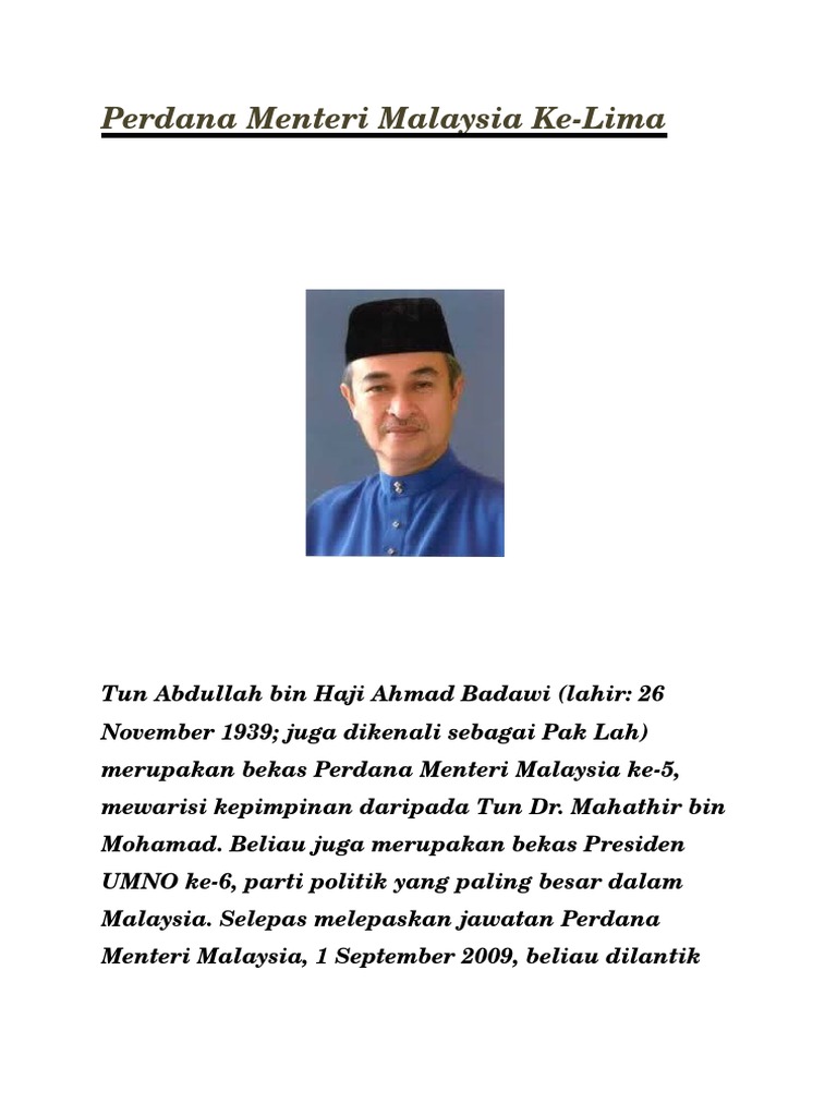 Sejarah Malaysia Dato Seri Abdullah Bin Haji Ahmad Badawi